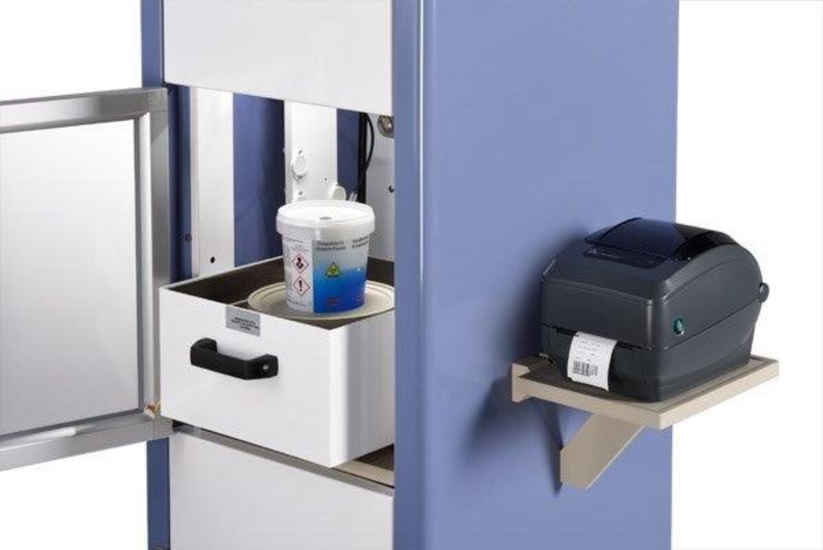 | TISSUE FILLING EASY : Dosage formol automatisé pour les blocs opératoires et les laboratoires d'anatomie pathologiqueEst un automate pour la gestion sécurisée du dosage formol dans des seaux pour échantillons histologiquesmais également pour le conditionnement et le stockage dans des seaux conservés dans le formol d’échantillons histologiques prélevés dans les blocs opératoires avant transfert aux laboratoires d’anatomie pathologique. L’objectif du Tissue Filling easy est de réduire au maximum l’exposition au formol dans le bloc opératoire, afin de protéger les opérateurs. |