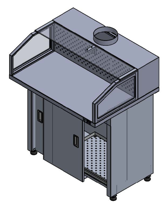 La hauteur de l’ouverture en façade est de 20 cm environ afin de permettre le passage des bras. La transparence des vitres en verre sécurit permet à l’utilisateur de travailler dans un confort optimum.